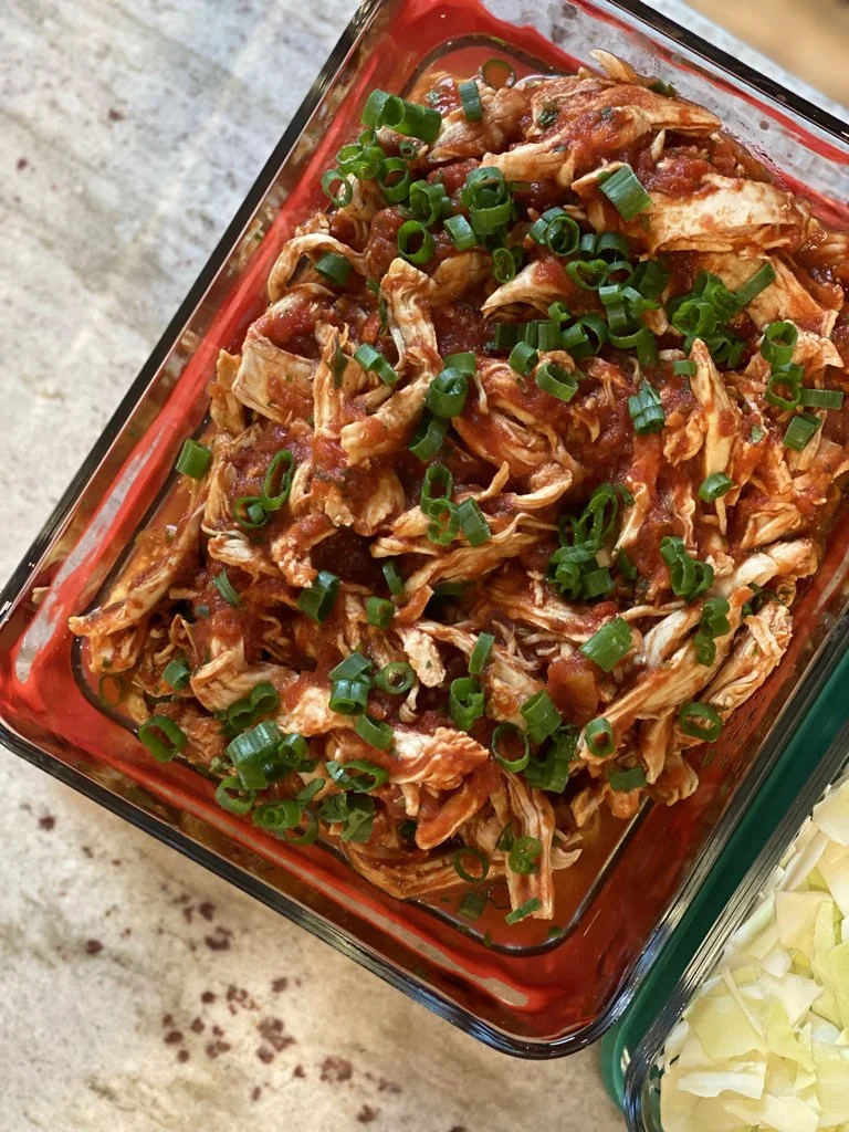- Serve the chicken in one or two tortillas (I like to double up on the tortillas when they are thin!) and top how you please.